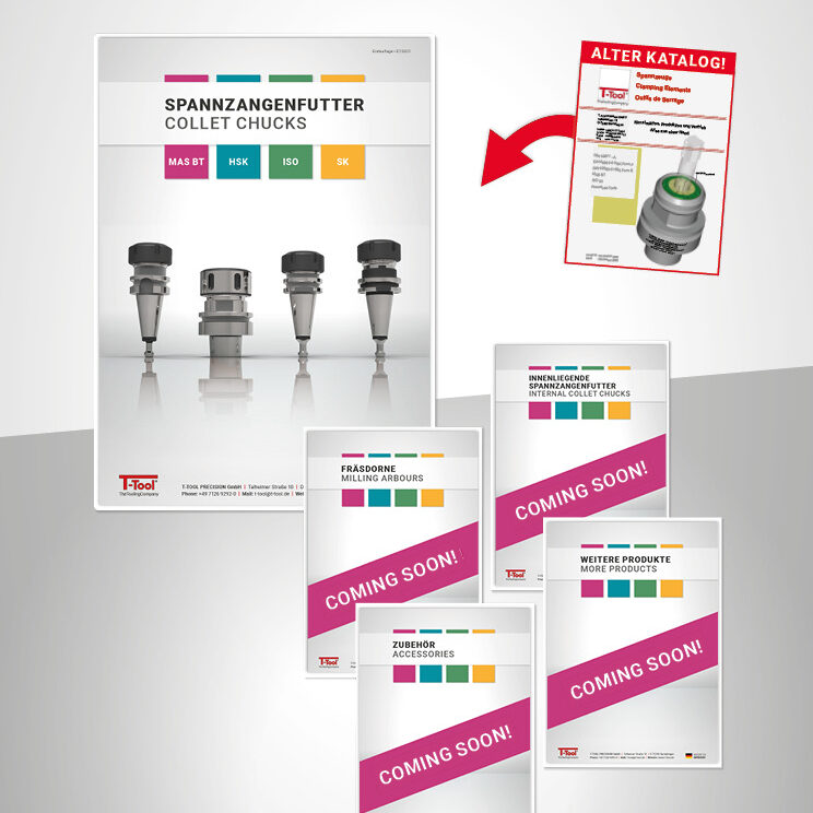 Hier finden Sie den neuen T-Tool Produktkatalog zu unseren standard-Spannzangenfutter von BT- bis SK-Kegel.